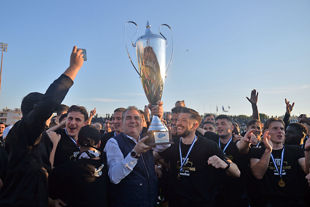 Η στέψη της ομάδας και η απονομή του κυπέλλου του πρωταθλητή, καθώς επίσης και η απονομή των μεταλλίων σε παίκτες, προπονητές και διοίκηση, πραγματοποιήθηκε χθες, Κυριακή 15 Μαρτίου 2026, στο κατάμεστο από κόσμο Δημοτικό Στάδιο Παραλίας της Καλαμάτας, αμέσως μετά τον νικηφόρο αγώνα με τον Ολυμπιακό Β’.